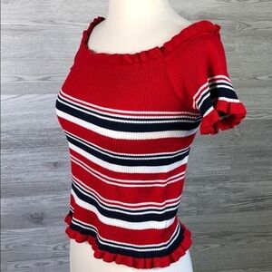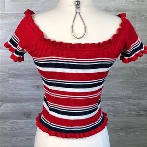 Cute top! Wear sleeves o. Or off shoulder.
