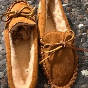 NWOT Alpine Swiss Sabine Genuine Suede Shearling Slip On Moccasin Slippers