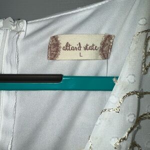 NWOT - Altar'd State Ivory and Gold Lace Romper with Rose Pattern
