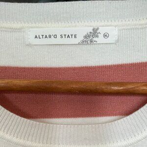 NWOT Altar'd State Payton Coral and White Striped Cropped Knit Sweater Top Sz XL