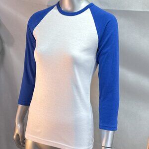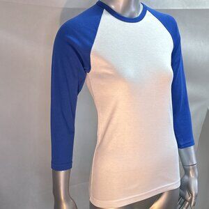 NWOT American Apparel "Baby Rib" 3/4 Sleeve Baseball Raglan T-Shirt Royal/White