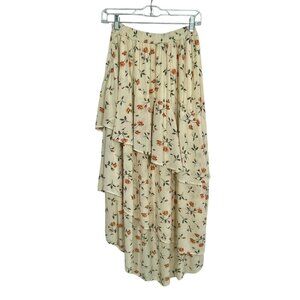 NWOT American Eagle Floral Tiered Ruffle Tie Waist Midi Skirt Cream Size S