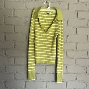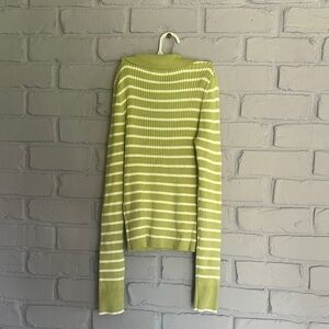 NWOT American Eagle Outfitters Olive and White Striped Sweater size S