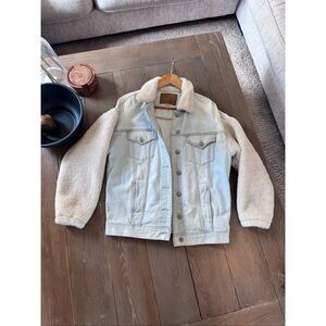 NWOT American Eagle Oversized Sherpa and Denim Jacket Size Medium