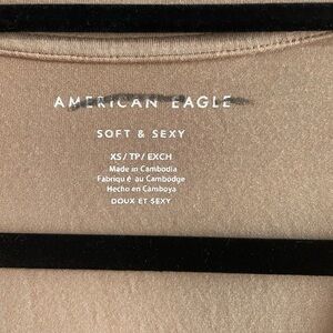 NWOT American Eagle Soft & Sexy tan v-neck shirt. Size X-Small.