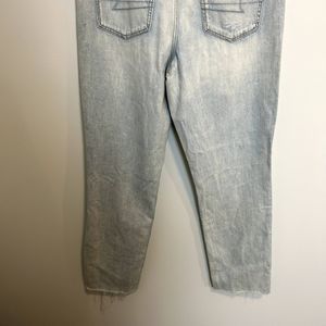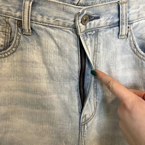 NWOT American Eagle Womens Skinny Jeans Size 12 Long 100% Cotton Raw Hem Distressed Blue Solid Zip Button Closure Light Wash Casual 3307987393