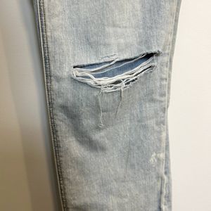 NWOT American Eagle Womens Skinny Jeans 12 Long 100% Cotton Raw Hem Distressed