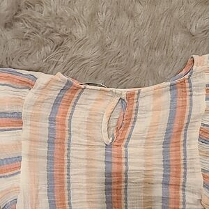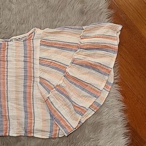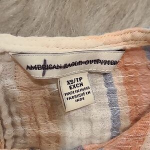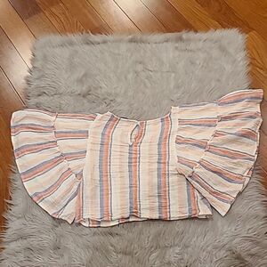 NWOT American eagle outfitters womens white, blue, orange and pink stripped cropped shirt with flowy sleeves size xs