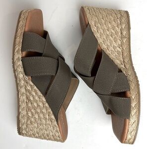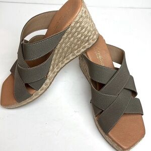 NWOT Andre Assous Rachel Espadrille Wedge Slip On Size 39 EU Taupe with Raffia