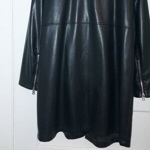 NWOT - Andrew Marc New York (L) Black Faux Leather Motorcycle Jacket Trench Coat
