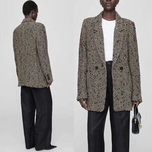 NWT Anine Bing Diana Blazer Jacket Sz XXS Oversized Fishbone Pattern Wool Blend