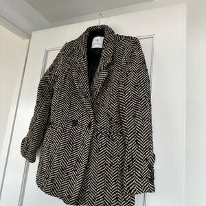 NWOT Anine Bing Diana Blazer Jacket Sz XXS Oversized Fishbone Pattern Wool Blend