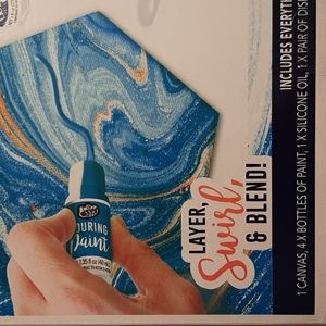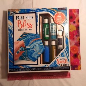 NWOT Anker Art Paint Your Bliss Deluxe Art Kit includes 4 pouring paints each 1.35 fl oz., silicone oil 1 fl Oz, 2 wooden mixing sticks, 1 canvas, 1 pair of disposable gloves and instructions. Questions and offers welcome. Bundle and save.
