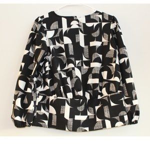 NWOT, Ann Taylor, Black Geo-Print Blouse, Size S