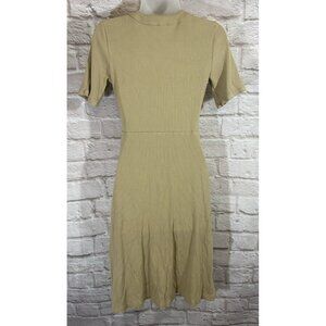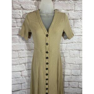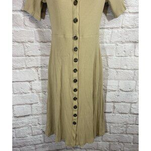 NWOT Ann Taylor Camel Tan Ribbed Button Front Stretch Midi Dress SP Small Petite