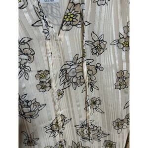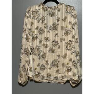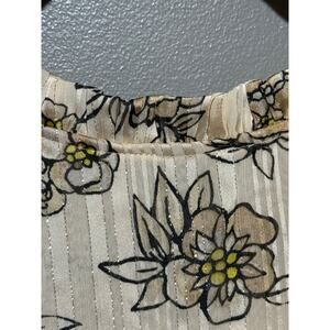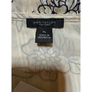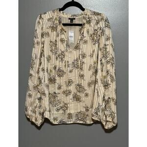 NWOT Ann Taylor Factory Blouse XL Floral Beige Gold Ruffle Polyester Beautiful