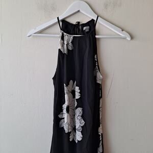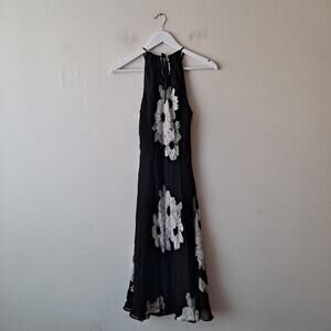 NWOT Ann Taylor Floral Silk Dress Sleeveless Halter Neck Midi Black & White Women's Size 2