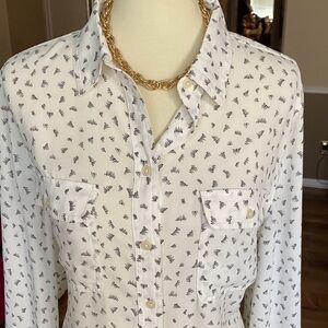 NWOT Ann Taylor LOFT Semi Sheer White Blouse with Black Print
