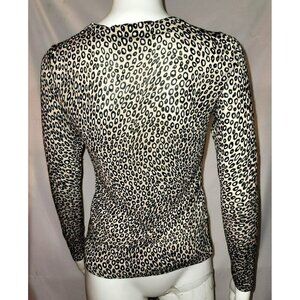 Chic and comfy Loft leopard print cotton cardigan in brown, tan, and ivory. Long sleeves; crew neck. Can be worn over a cami, t-shirt, or alone. Approximate Measurements laid flat:
