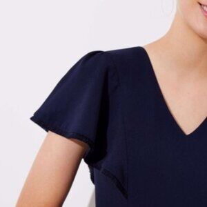 NWOT Ann Taylor Loft navy fringe flutter sleeve sheath dress