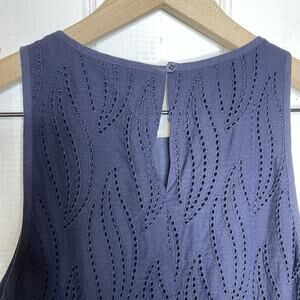 NWOT Ann Taylor Petite Eyelet Midi Dress Fit & Flare Size 4P Navy Blue Pleated