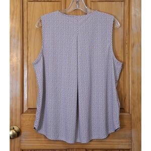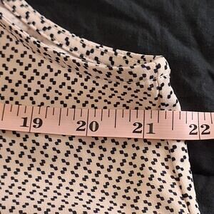 This sleeveless blouse from Ann Taylor is in New w/o Tags, Pink with Black Polka Dot Pattern. Swing Style. Pleated Front and Back. Keyhole at Back of Neck.. Adorable! Size Large Petite.