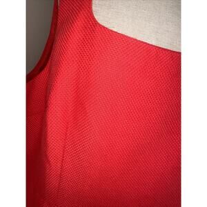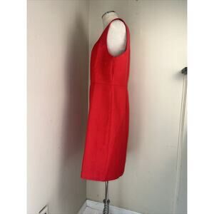 Elevate your wardrobe with this stunning Ann Taylor sheath dress in a reddish orange color. The dress features a textured design that adds depth and dimension to the fabric. The scoop neckline and sleeveless design make it perfect for a party or cocktail occasion, while the knee-length cut adds a touch of sophistication.