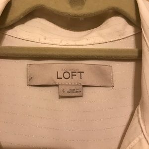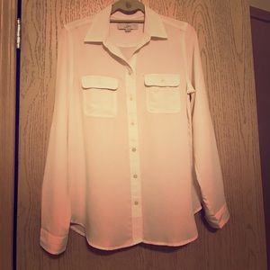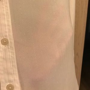 Never worn. No tags or receipts. Cream colored blouse with sliver shiny pinstripes. Comes from a smoke free home.