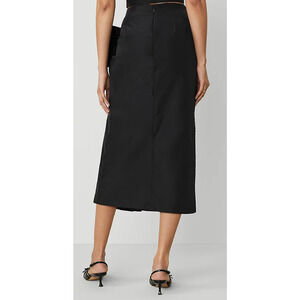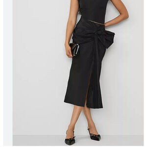 NWOT Ann TaylorBlack Taffeta Draped Bow Midi Skirt 14