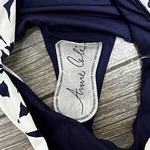 NWOT Anne Cole Bikini Bottoms XS Fold Over Swimsuit Bottoms Navy White Daisy New