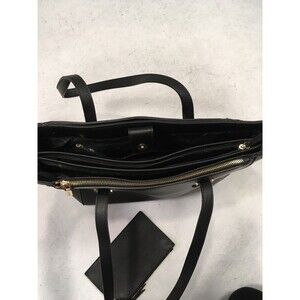NWOT Anne Klein Black Laptop Bag Wristlet Gold Hardware Bows Faux Leather Career