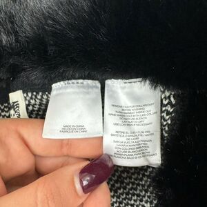 NWOT Anne Klein Black Striped Poncho Zip Front Detachable Faux Fur Collar Sz L