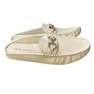 NWOT Anne Klein Cooper Mule Shoe in White with Gold Adornment Size 9.5