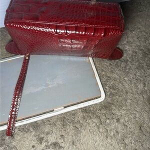 NWOT Anne Klein clutch wristlet made with alligator leather burgundy color 8”W x 5”L