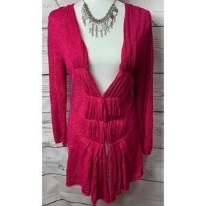 NWOT Anthro Moth Plunge Fuchsia Ruffle Cardigan