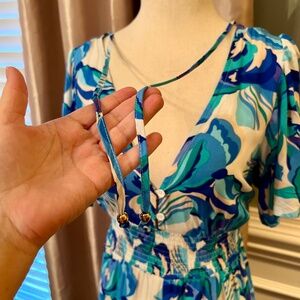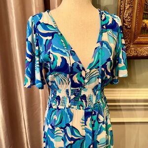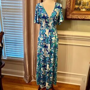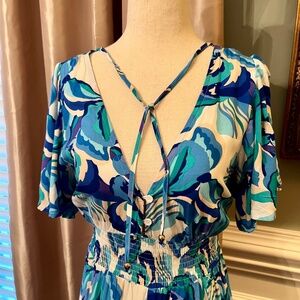 NWOT Anthropologie Abel the Label Blue Floral Flutter Sleeve Maxi Dress Size XS