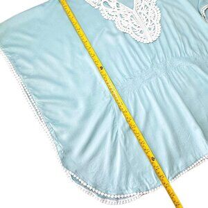 NWOT Anthropologie Chaudry KC Kimono Top Sz.L Blue Crochet Beach Cottage Boho