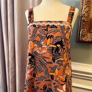 Jungle Motif Print with Ric Rac Accent at the Bust and Shoulders