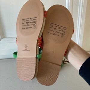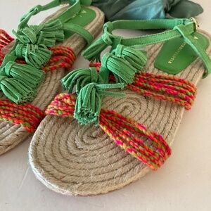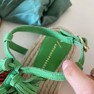 NWOT Anthropologie Fringe Rope Green Suede Boho Sandals Sz 6
