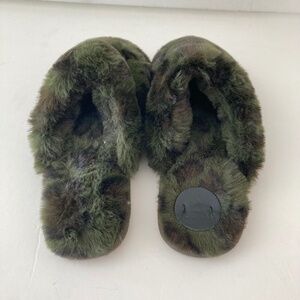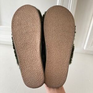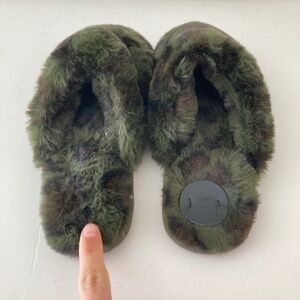 NWOT Anthropologie Furry Green Animal Print Fluffy Slide Slippers Sz 5/6