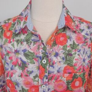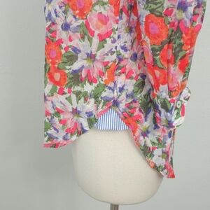 NWOT Anthropologie HD in Paris Orange Pink Floral Cotton Button Down Top