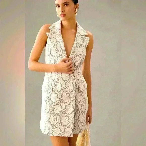 NWOT Anthropologie Hutch Sleeveless Double-Breasted White Lace Blazer Dress