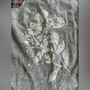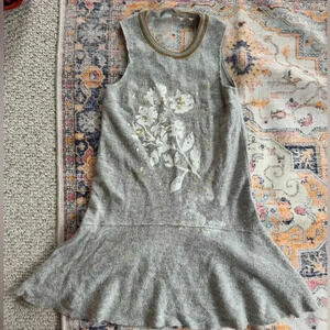 NWOT Anthropologie Knitted And Knotted Gray Gold Floral Wool Peplum Dress Large