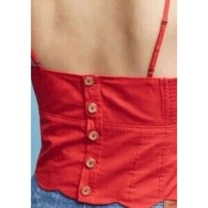 NWOT Anthropologie MAEVE Women's Red Bo Scalloped Buttons Back Cotton Red Top 14