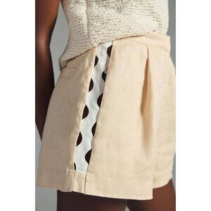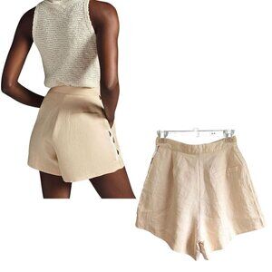 NWOT Anthropologie MON RENN Coast Linen Peach High Rise Shorts Cutout Sides Sz S