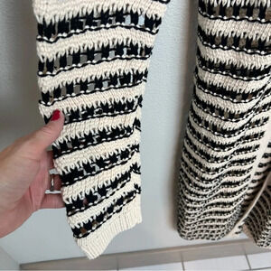 ANTHROPOLOGIE • Maeve Lana Striped Longline Cardigan Cream Black Casual Women’s