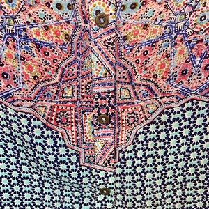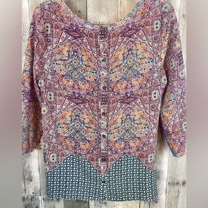NWOT Anthropologie Maeve Sidney Silk Mosaic Button Back Top in Blue Combo Size 6.