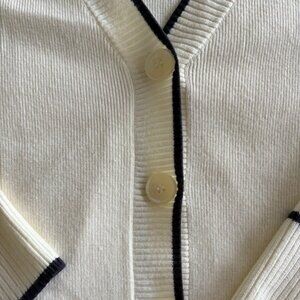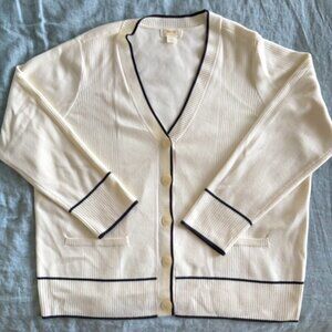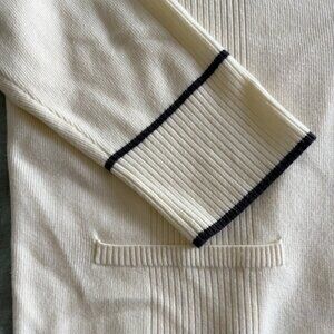 NWOT. Changed sizes before I could wear this to a work meeting. Soft cream with a navy border. It's shockingly soft! From a smoke and pet-free home.