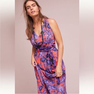 Anthropologie Mauve Red & Purple Boho Maxi Dress