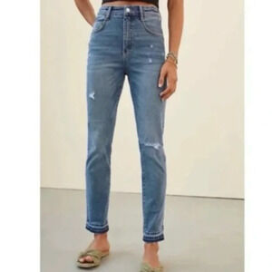NWOT Anthropologie Pilcro High Rise Cigarette Denim Jeans Raw Hem Distressed 25